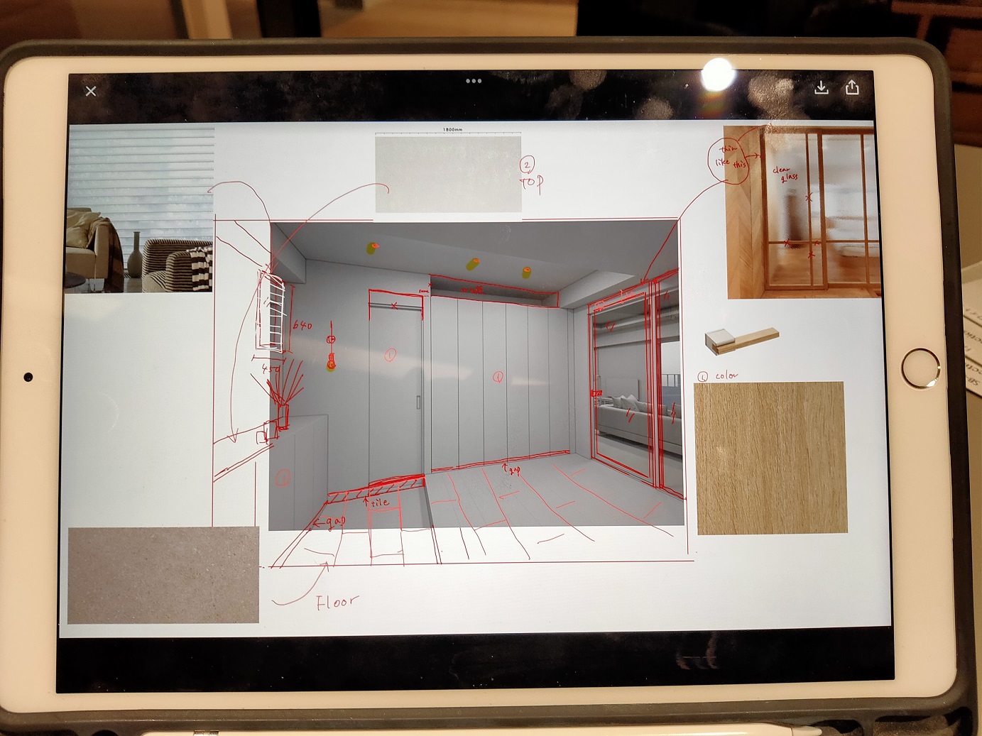 ガラスのテンパードアとフィックスが特注でお気に入りです。