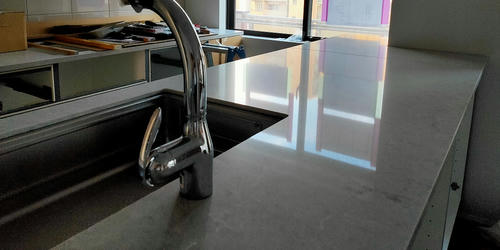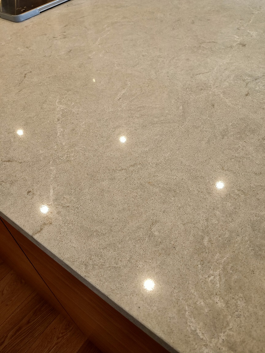 左側にシーザーストーンの「ビアンコドリフト」を