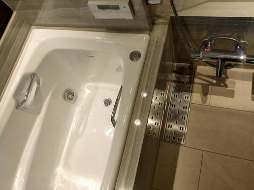 奥のガラスドアを開けると最後に完成したお風呂。