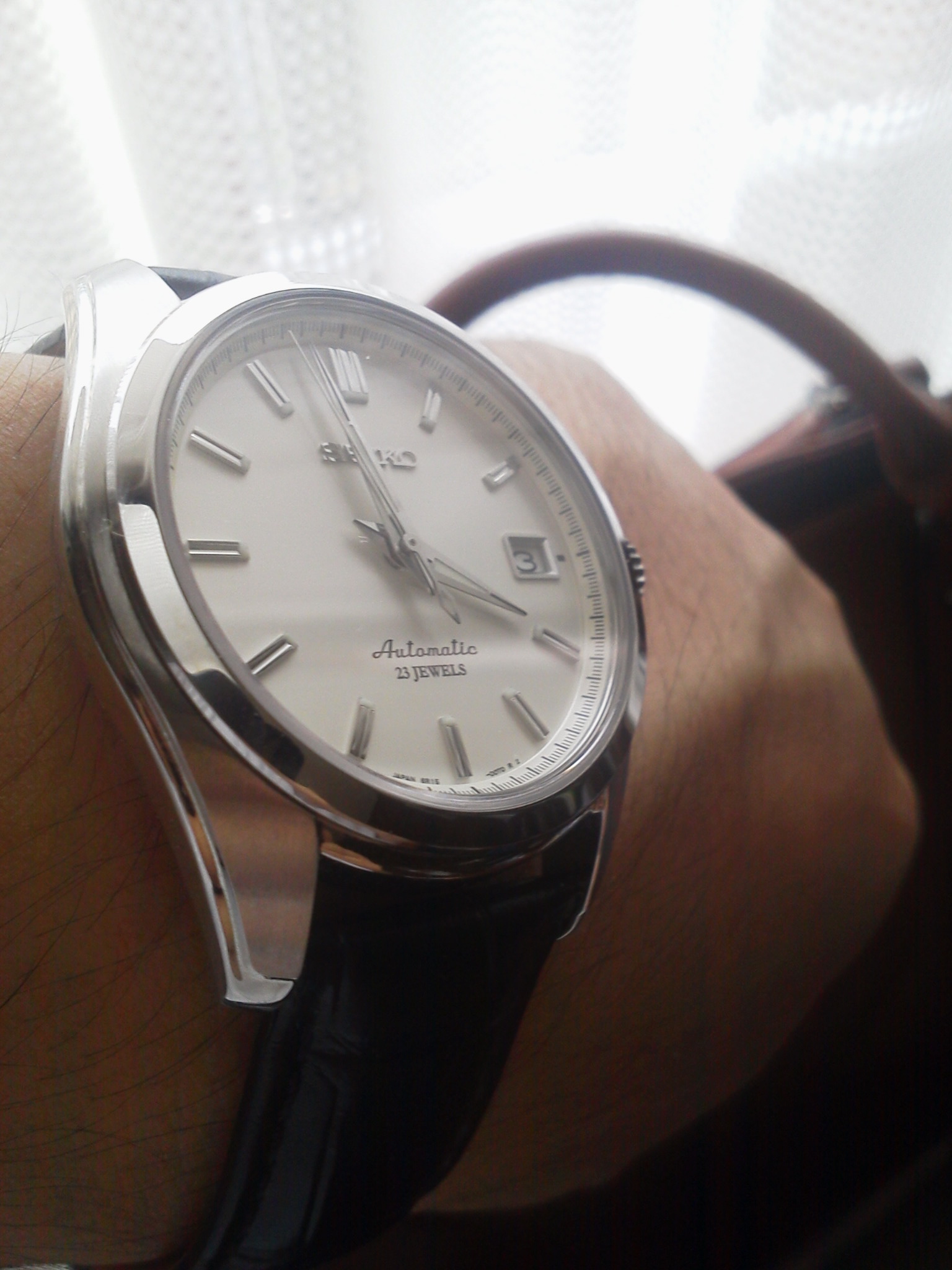 SEIKOの白文字盤、自動巻きです。