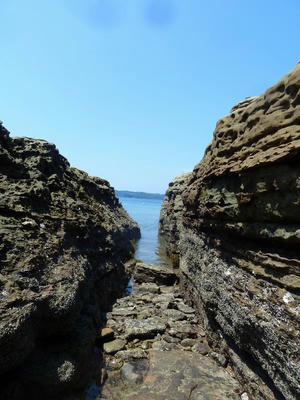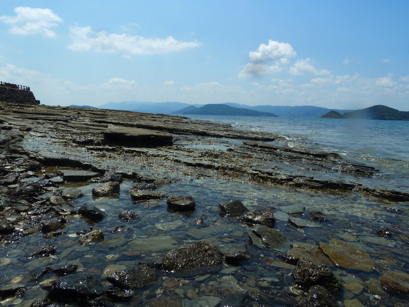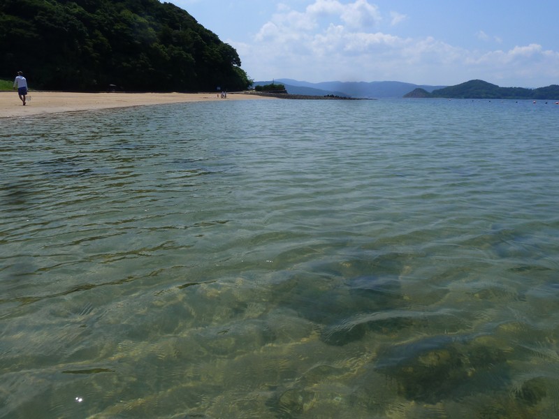 遠浅でどこまで進んでも腰ぐらいまでしかなかったこと。