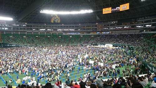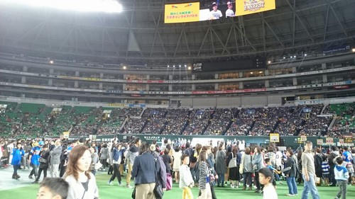 座席に戻って、ビールと唐揚げセット1000円ぐらいを買って