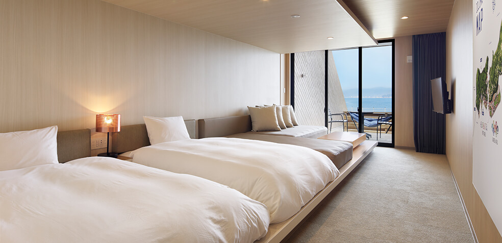 ベッドはダブル×2とシングル1が用意されていて