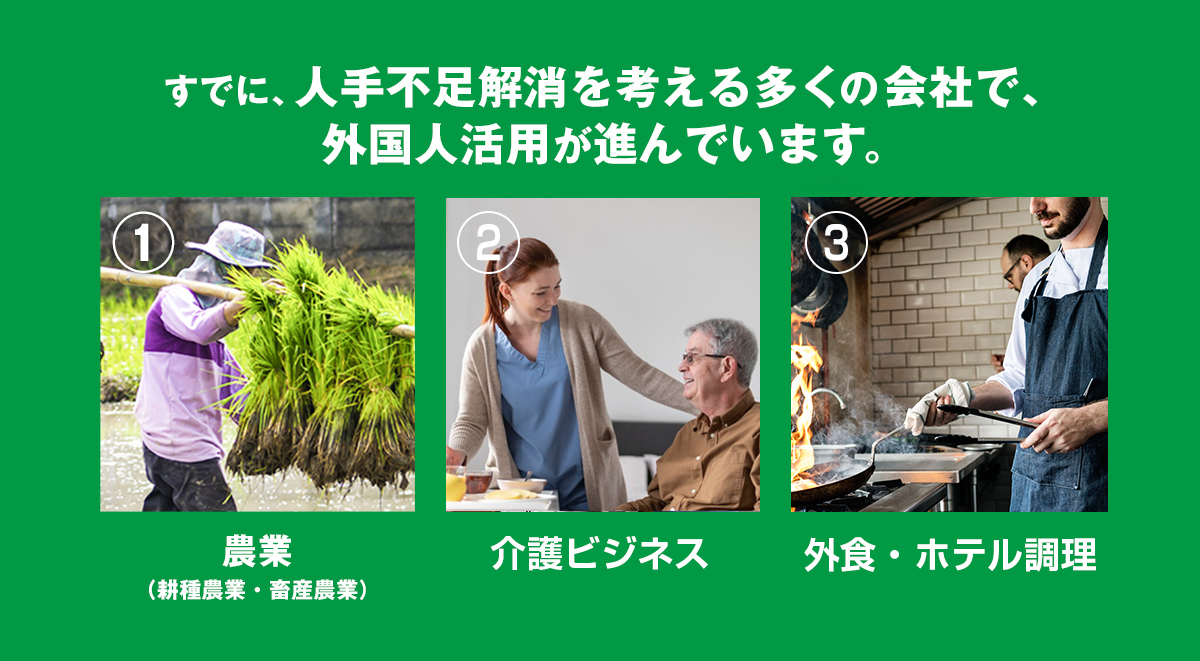 地方の農協や漁業、建設業などの人手不足の問題を抱える業界に