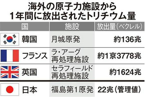 トリチウムは世界中の原発の処理水として大量に放出されています。