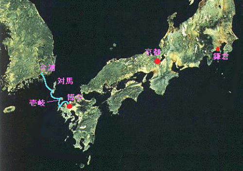 大宰府から京都や鎌倉へ向けて急報を発すると