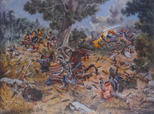 元軍に突撃を(上の集団戦をしかける騎馬隊)