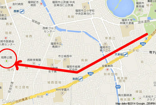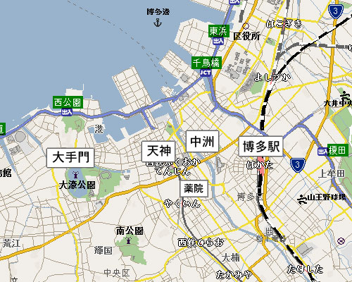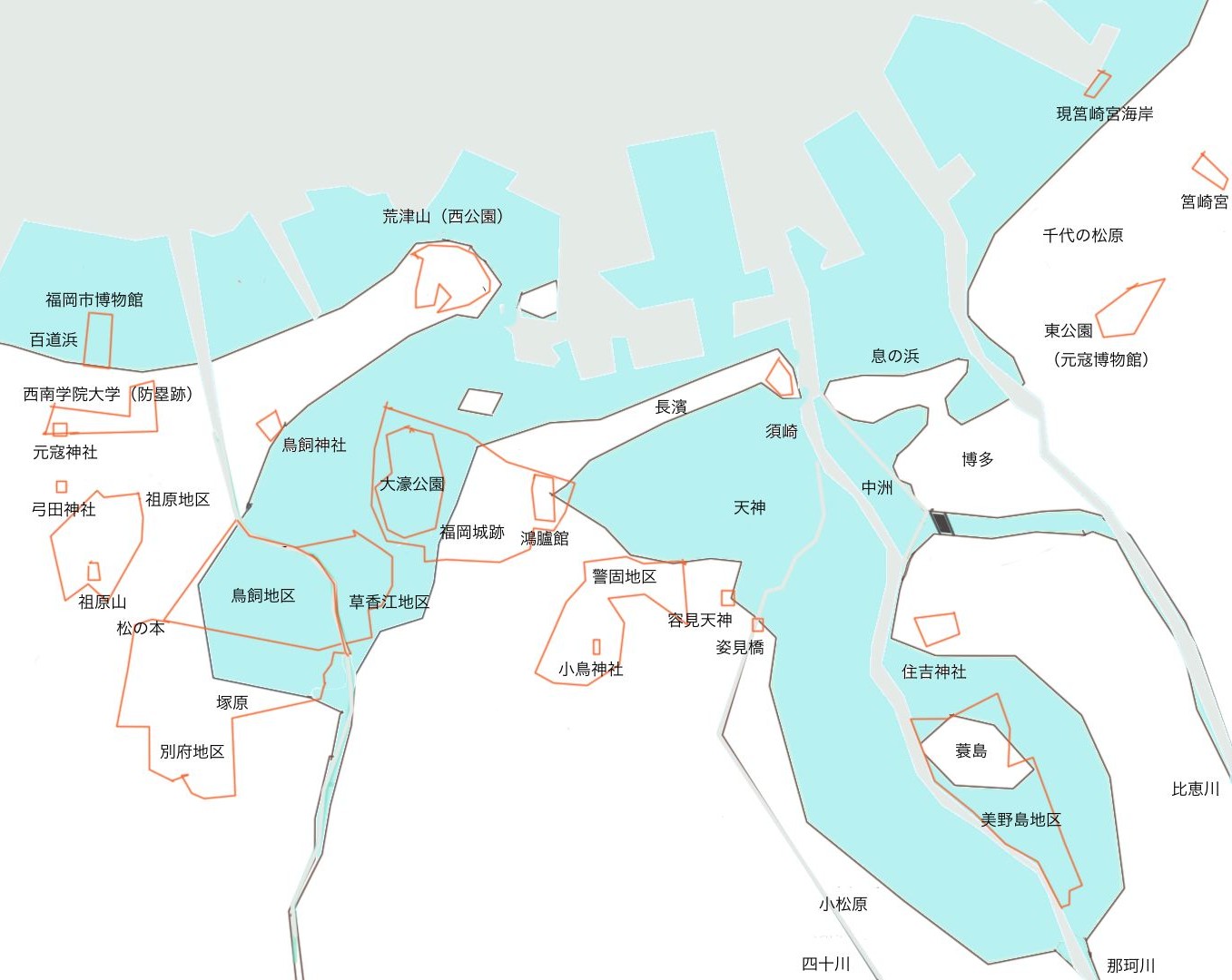 現在の福岡市都心部の地図。