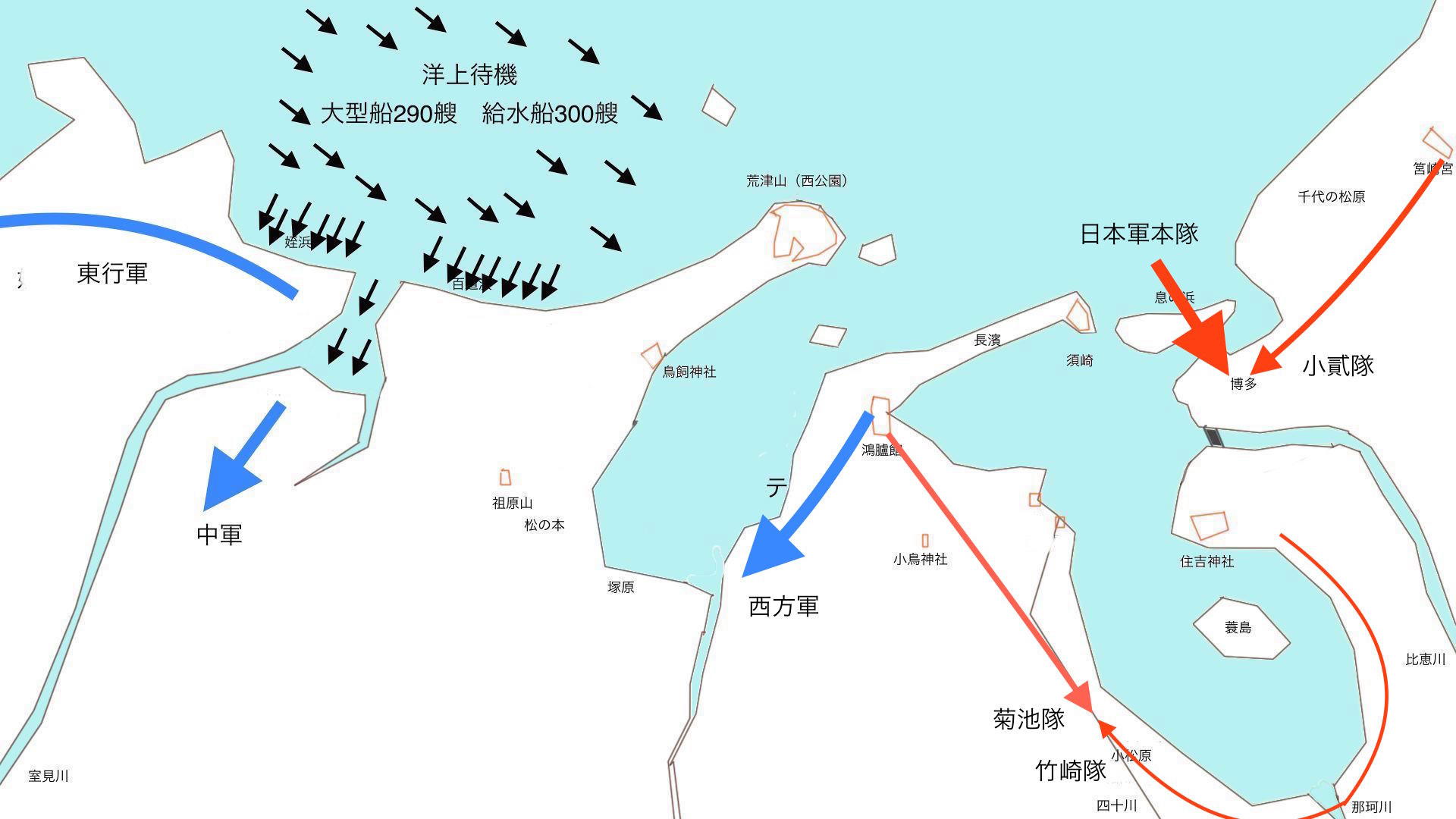 総大将・少弐景資の下、博多の息の浜にほぼ