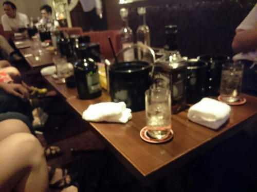 2017/07/26 Category : 食事 た・・・だい・・ま おはよう・・・おえ・・・気持ち悪ぅ~後半、記憶があまりありません。特に会計のところが曖昧だ。まあ、お金は結構減ってるから支払っているみたいだしきっと大丈夫だろうな。た、楽しかったですよ。どのくらい飲んだかなぁ。生ビール×2、芋焼酎×4?5?(水割りです)洋酒×1,2,3,4・・・うん。2件目までは覚えてる。覚えている範囲は・・・楽しかったな。3件目でお姉さんがいるところへ連れていかれちゃって以降下り坂でしたね。 覚えてないけどピンボケ写真をいつの間にやら撮ってた。こういう場所は苦手なので半分寝てましたけどね・・・そして断片的に記憶している事は1人が恐らく完全に記憶を無くして酒癖が悪かった・・・帰りも千鳥足だったので送ろうとしたら暴れちゃって。「俺は酔ってない!触れるな!!」酔っ払い扱いにキレる人だったみたい。駅も近かったのでいつもこんな感じで飲んでるのは聞いてたしまあ、大丈夫かと別れたんだけどやっぱり心配になって追いかけたけど居なかった・・・。メールをしてるけど今のところ返信がない。ちょっと心配しています。僕より酔った人がいたのである程度しっかりする事ができましたが危なかったな・・・ちょっと飲む量を気をつけないと誰かに迷惑かけちゃうかもしれないしね・・・。お仕事頑張ります!※臼たるさん、ぽこさん。コメントまた落ち着いてから書きます!ありがとう! [0回]
