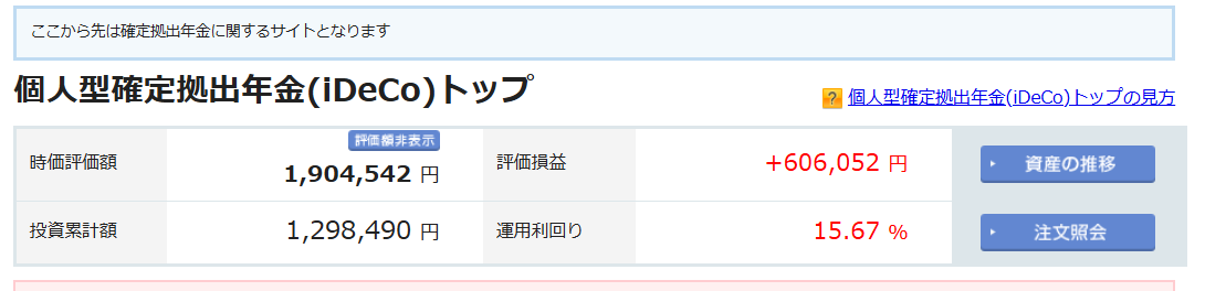 iDeCoも額は少ないけどかなり戻ってきたね。