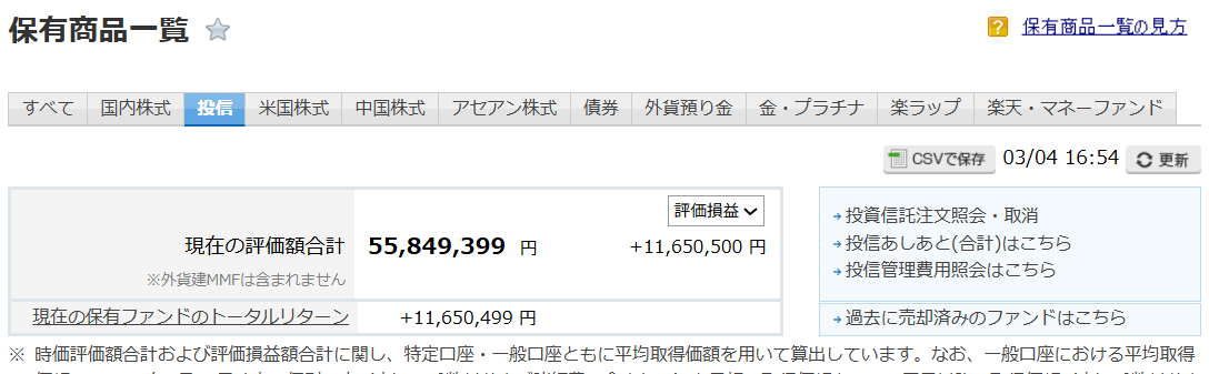 今年分のNISAを全部一括で買っていますので総額は増えています。